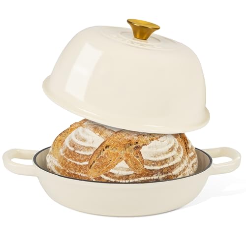 Enamelled Cast Iron Dutch Oven Pot – Dutch Oven For Sourdough Bread Baking – Cast Iron Bread Pot – cream, 6 Quarts, 26cm – by Nuovva