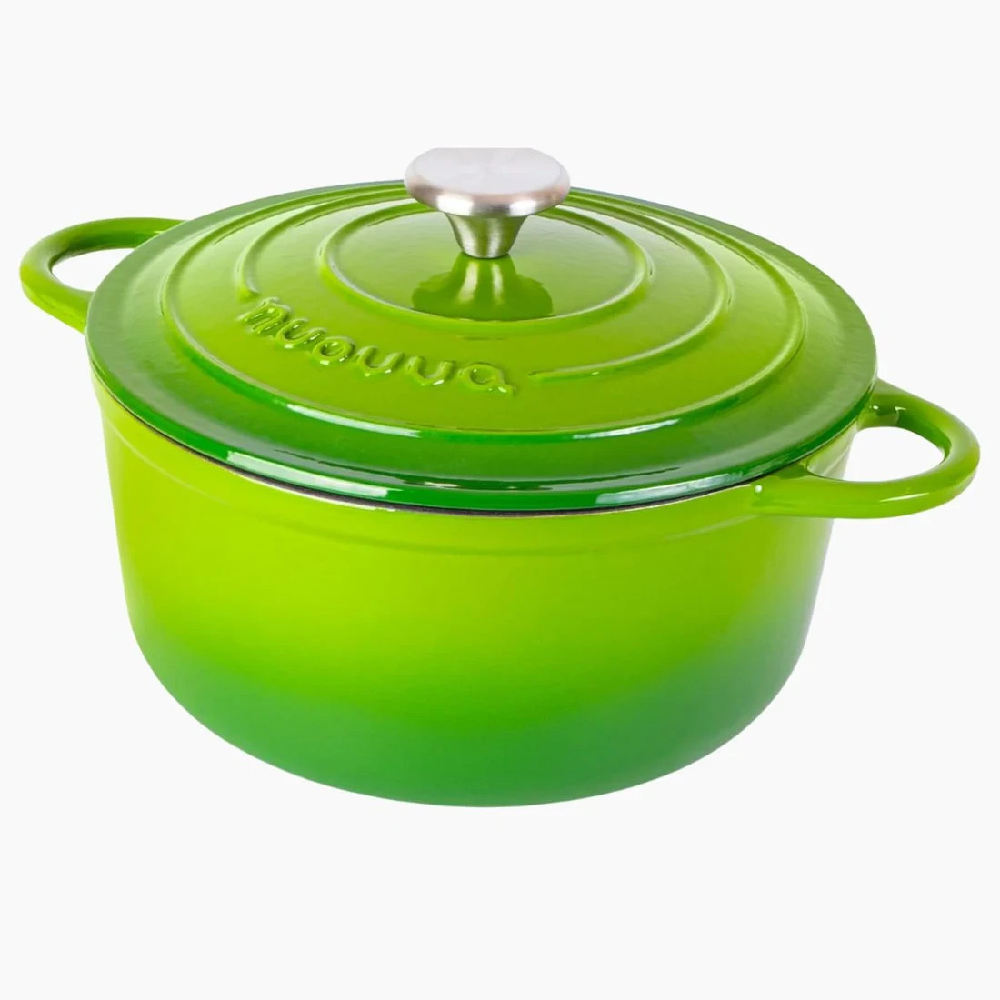 Nuovva Enamelled Cast Iron Dutch Oven Pot with Lid – 5 Quart Casserole Dish – Ceramic Dutch Oven for Bread Baking, Roasting, Braising & Stews – Oven Safe up to 500°F – 24cm Green