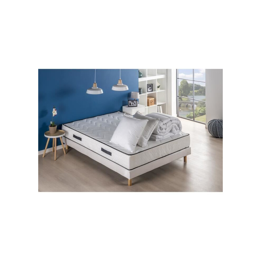 Pack box spring mattress 160 x 200 cm - Height 24 cm - Duvet and 2 pillows - 7 zones - reversible - made in Belgium