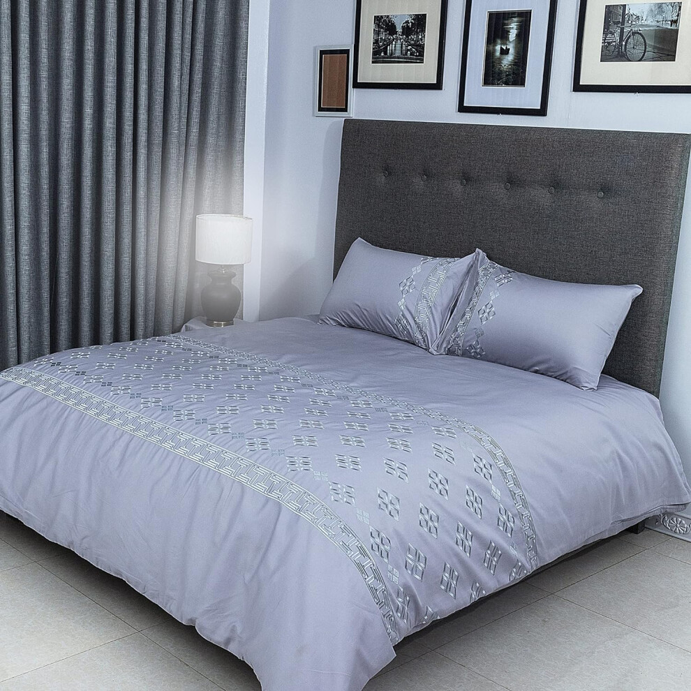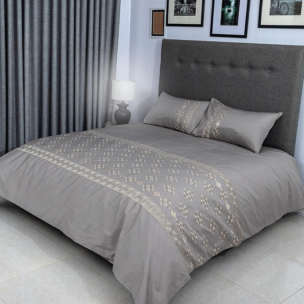 Aisbo Double Duvet Covers Set Grey - 3Pcs Bedding Bed Double,