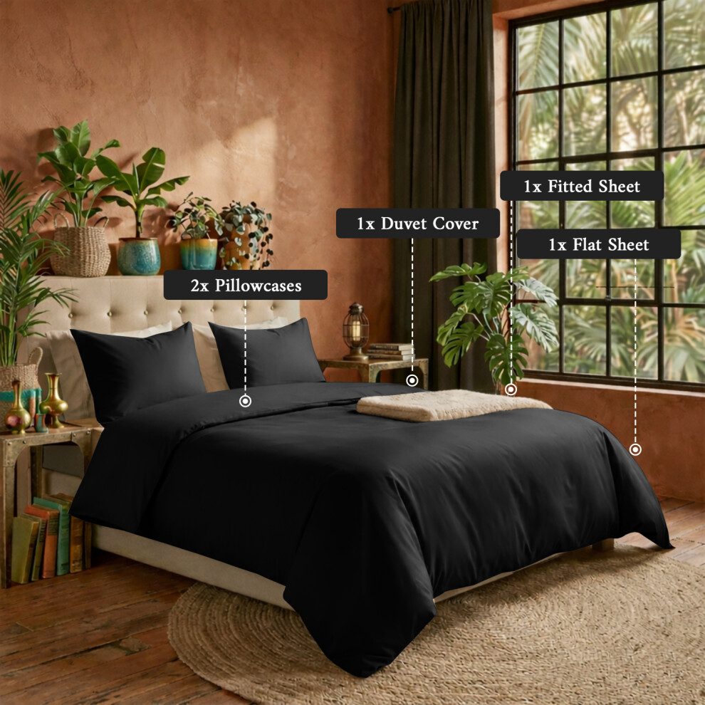 (Black, Super King) 4 Piece Duvet Covers Bedding Set Fitted Bed Sheets
