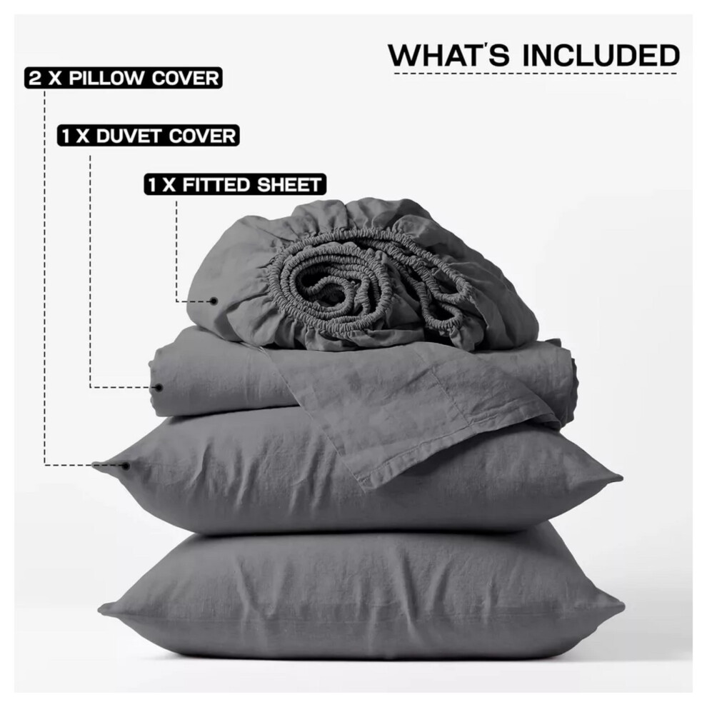 FLAX LINEN Duvet Covers Set Charcoal, Classic Modern (Double)