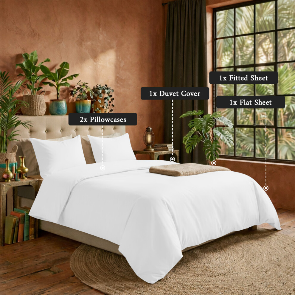 (White, Super King) 4 Piece Duvet Covers Bedding Set Fitted Bed Sheets