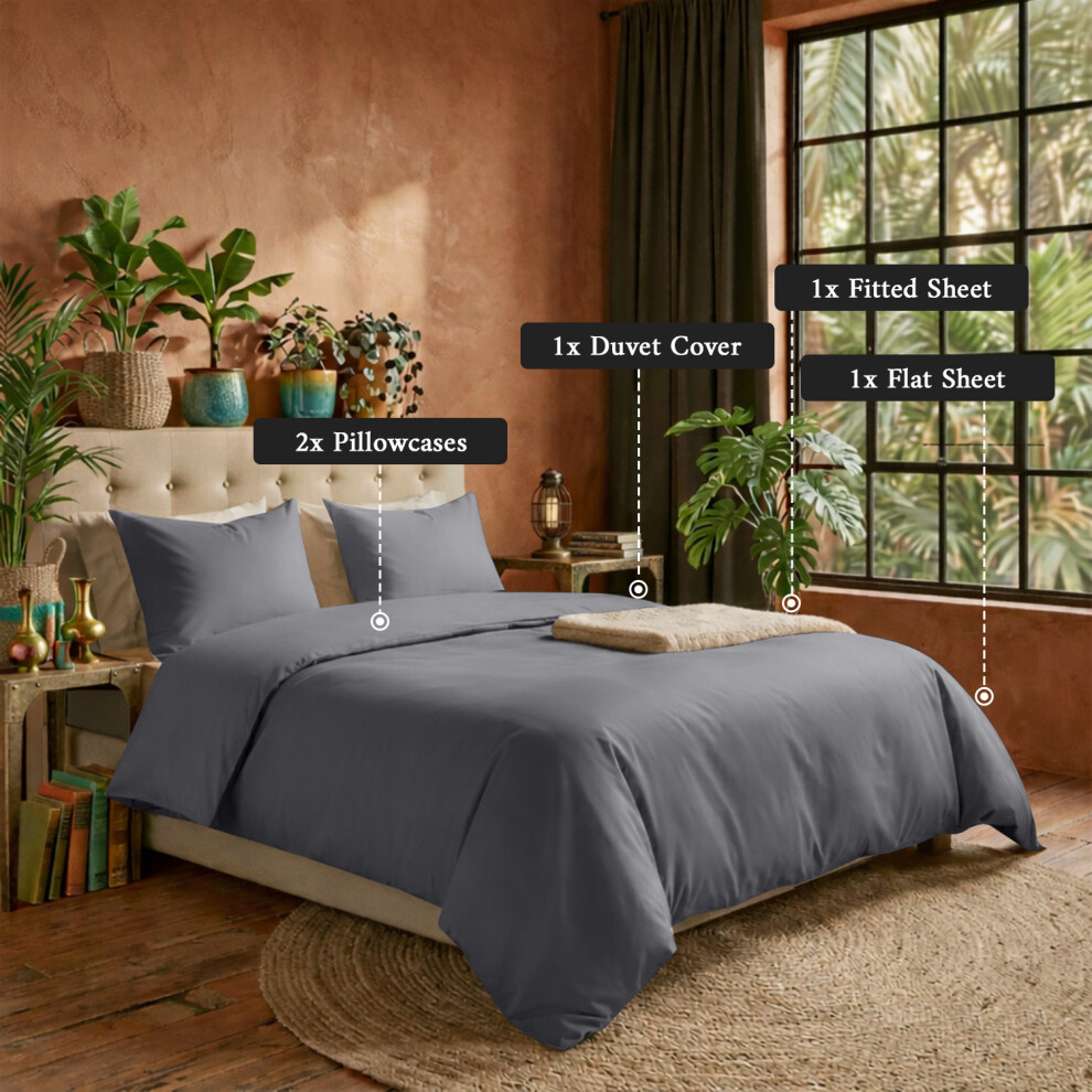(Charcoal, Super King) 4 Piece Duvet Covers Bedding Set Fitted Bed Sheets