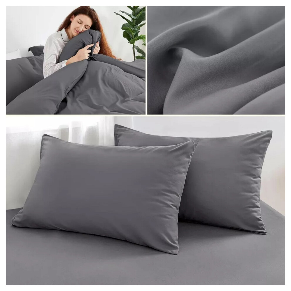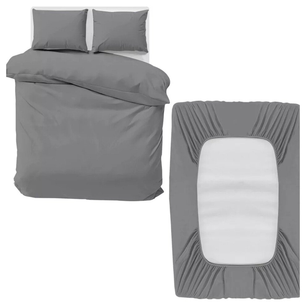 (Grey, Super King) 4 Piece Duvet Covers Bedding Set Fitted Bed Sheets