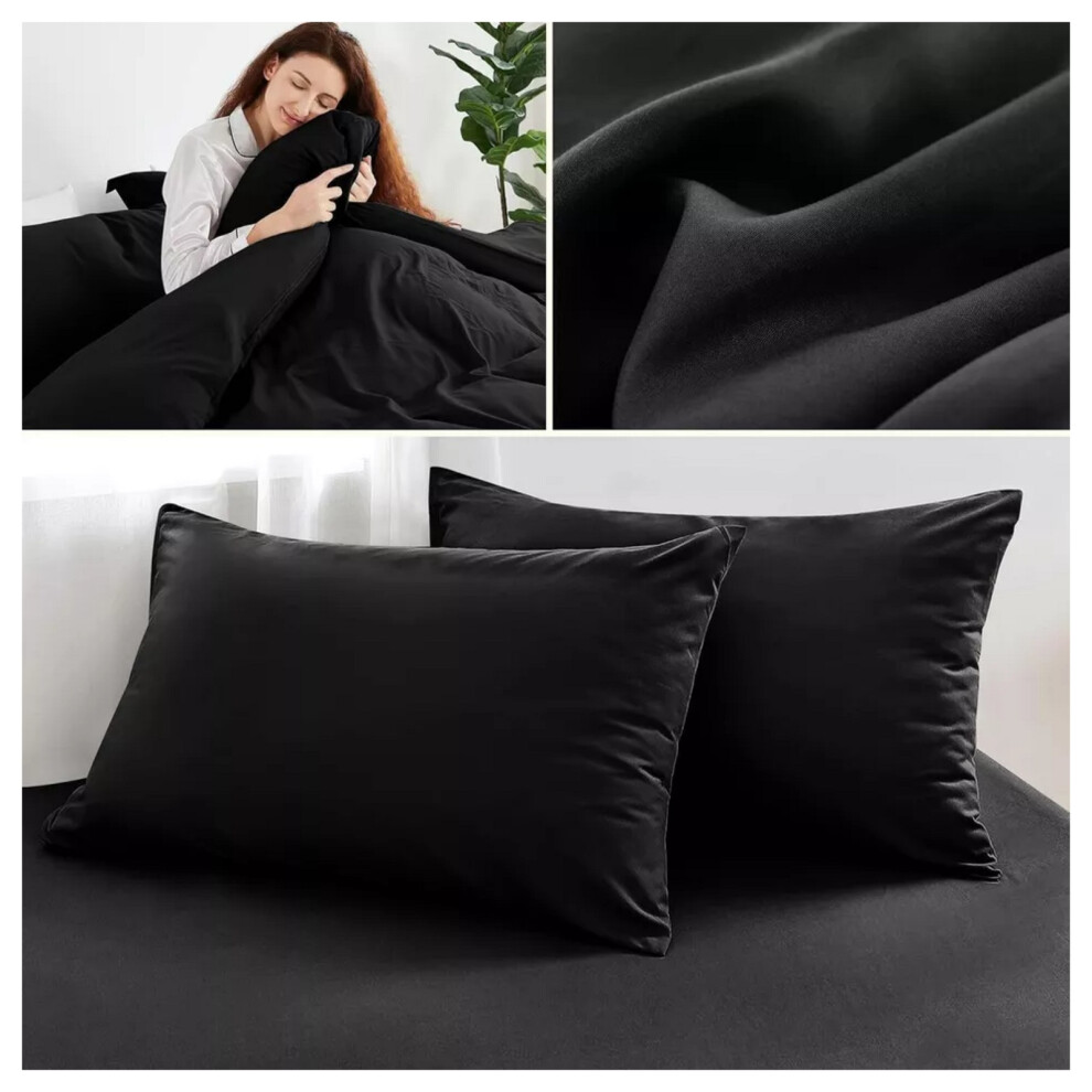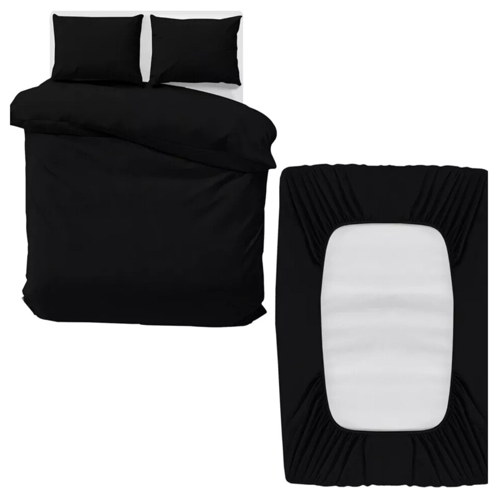 (Black, Double) 4 Piece Duvet Covers Bedding Set Fitted Bed Sheets