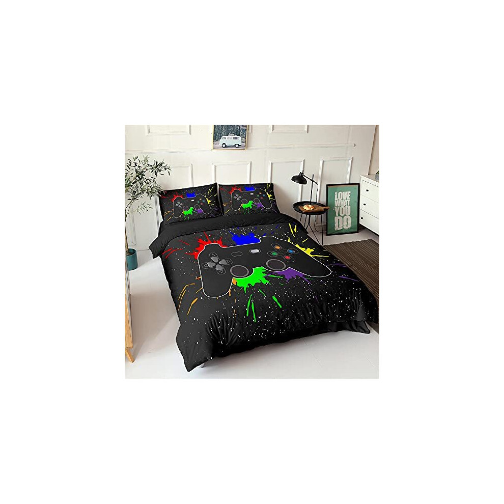 Loussiesd Double Duvet Covers Set Multi-color Gaming Bedding Video Game Controller Bedding Set for Kids Teens Boys,Luxury Room Decoration 3 Pcs