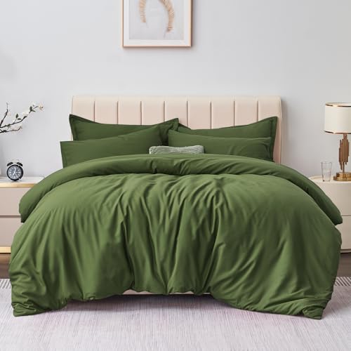 Aisbo Double Duvet Covers Set Olive Green - 3Pcs Bedding Set Double Bed Soft Brushed Microfiber Quilt Cover with 2 Pillowcases