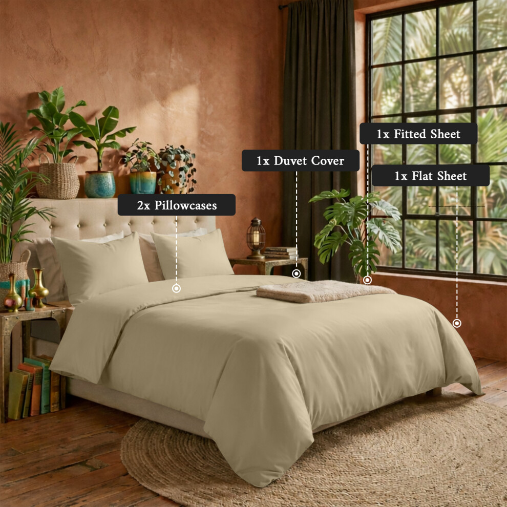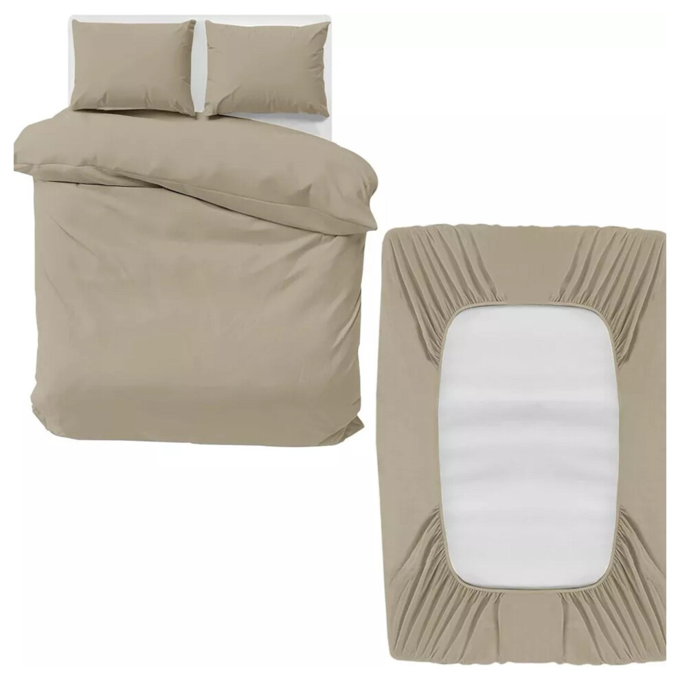 (Beige, Super King) 4 Piece Duvet Covers Bedding Set Fitted Bed Sheets