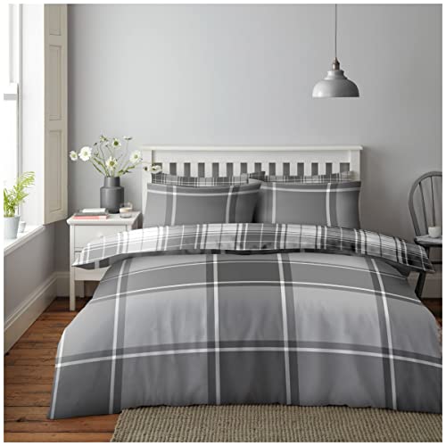 GC GAVENO CAVAILIA Tartan Duvet Covers Set, Reversible Bedcover Check Bedding Double Bed Set, Super Soft Quilt Covers, Grey