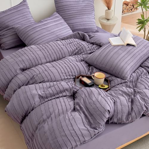 DJY Tufted Double Duvet Cover Set, Purple Microfiber Bedding, 3 Piece Soft and Lightweight Duvet Covers Set with Zipper Closure (Double, 200x200cm)