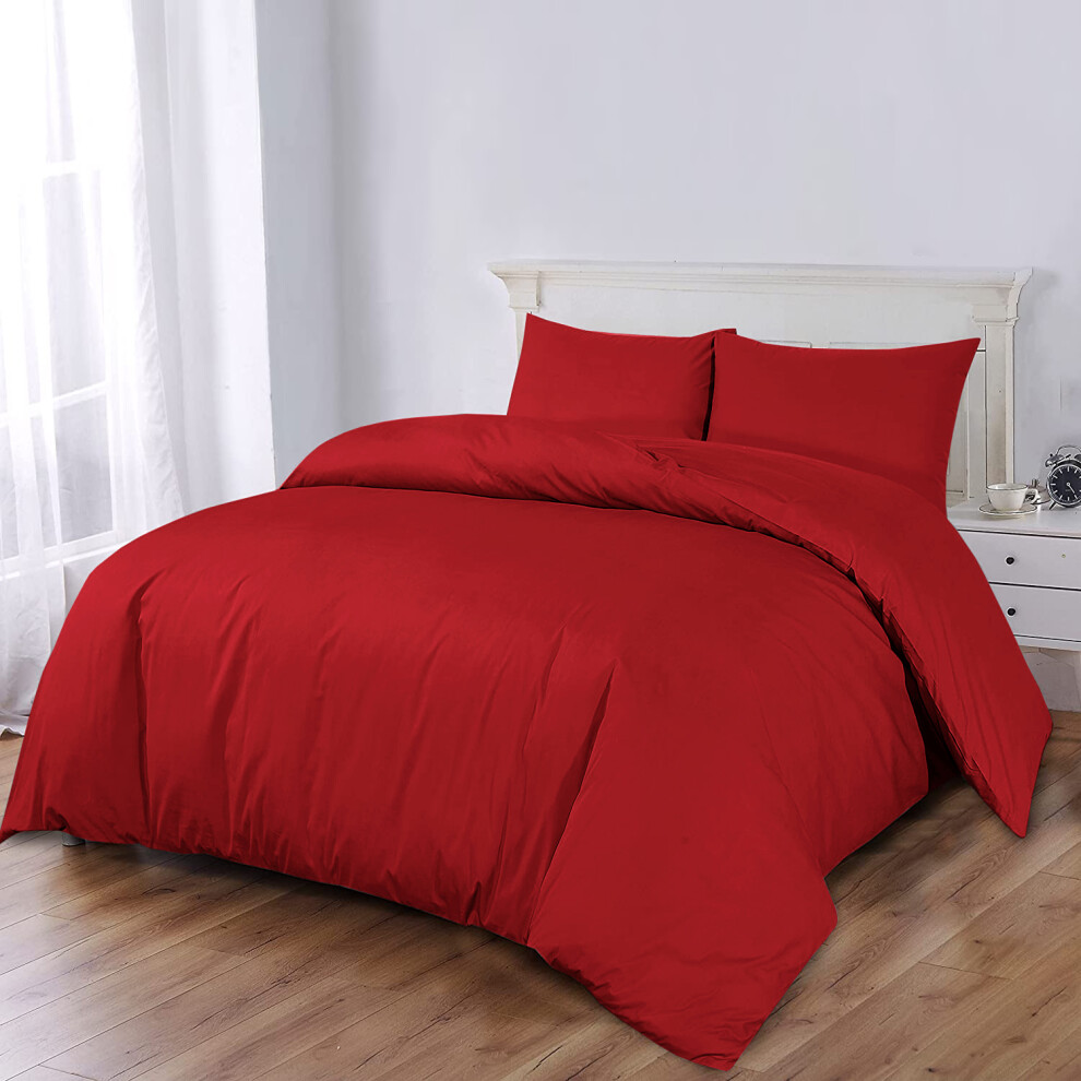 (RED DUVET COVER & PILLOW COVERS, SINGLE) Hotel Quality Duvet Quilt with Hollowfibre Filling & Plain Duvet Cover Bedding Set