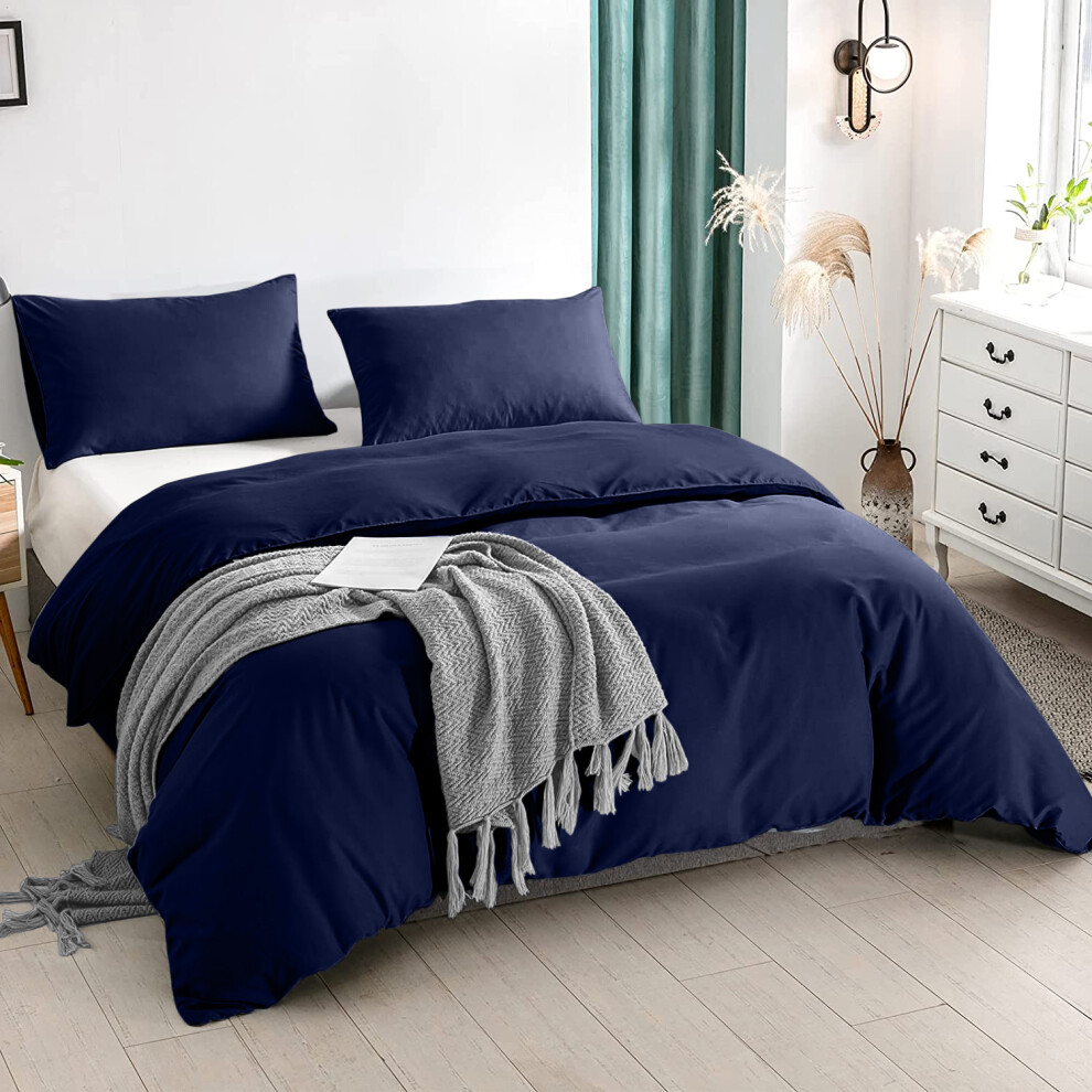 (NAVY DUVET COVER & PILLOW COVERS, SINGLE) Hotel Quality Duvet Quilt with Hollowfibre Filling & Plain Duvet Cover Bedding Set