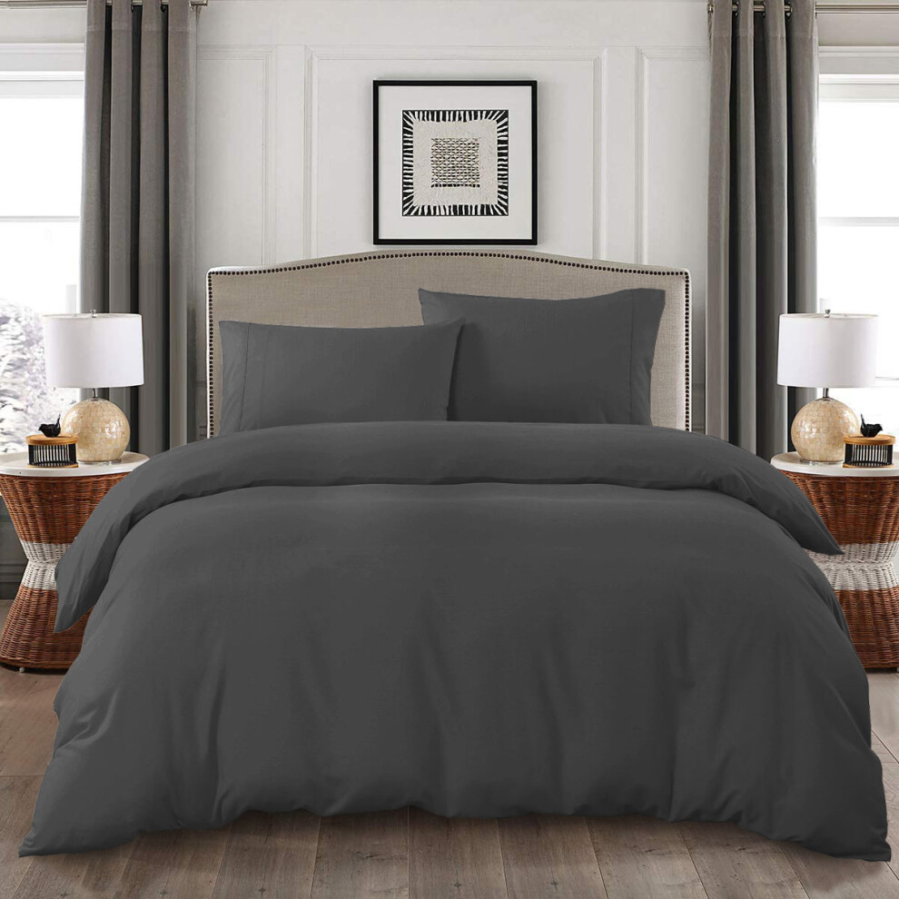 (CHARCOAL DUVET COVER & PILLOW COVERS, SINGLE) Hotel Quality Duvet Quilt with Hollowfibre Filling & Plain Duvet Cover Bedding Set