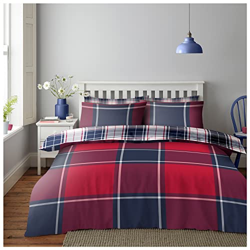 GC GAVENO CAVAILIA Checkered Bedding Set, Printed Tartan Duvet Covers Single, Reversible Bedset Printed Check Quilt Covers, Red