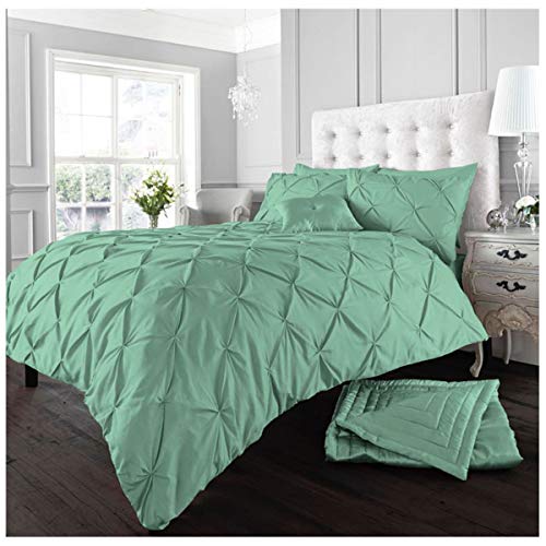GC GAVENO CAVAILIA Luxury Pintuck Duvet Cover Single, Polycotton Pinch Pleat Bedding Sets, Washable Quilt Covers With Pillow Case Peppermint