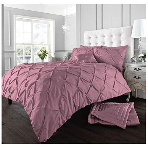 GC GAVENO CAVAILIA Luxury Pintuck Duvet Cover Single, Polycotton Pinch Pleat Bedding Sets, Washable Quilt Covers With Pillow Case Rose