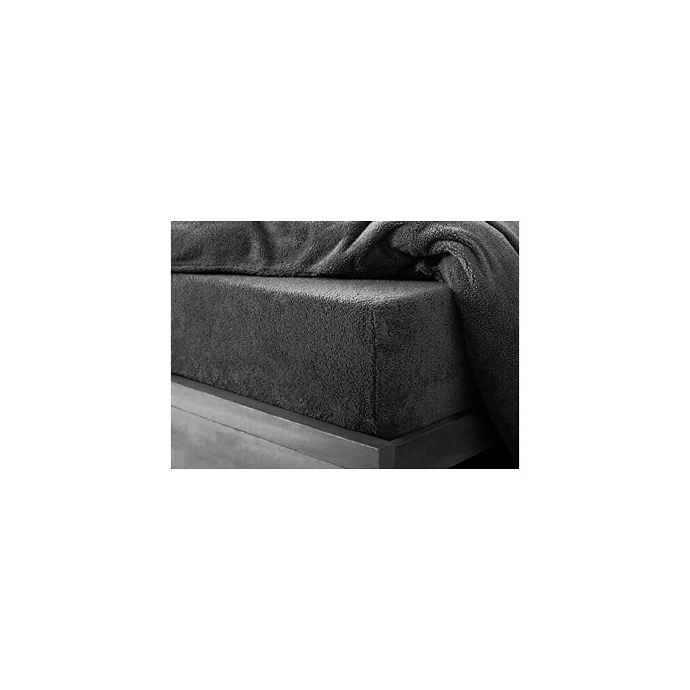 Teddy Bear Fleece Fitted Bed Sheet Extra Deep 30 cm or Duvet Covers Single Double King Super King Size UK (Double charcoal)