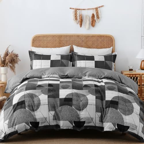 Lunoroey Checkered Duvet Cover Set Double Size Black And White Checkerboard Plaid Grid Quilt Cover Geometric Microfiber Soft Bedding Set (1 Duvet Cover and 2 Pillowcases)