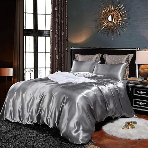 Silver Duvet Cover Set Double Size Silk Like Satin Bedding Sets Summer Reversible Quilt/Comforter Cover Polyester Honeymoon Sexy Luxury Soft Microfiber Bedding Decor