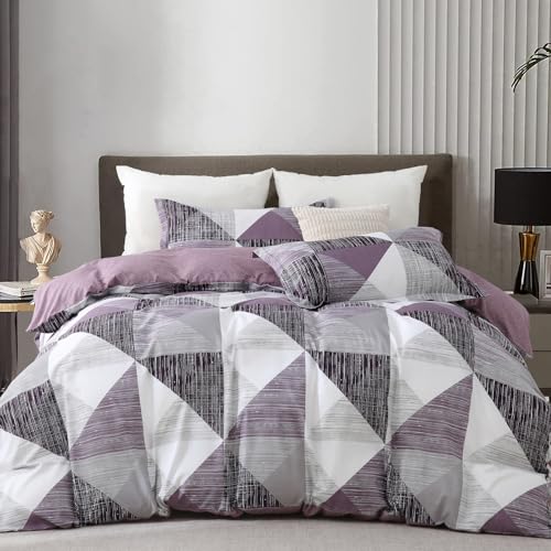 WONGS BEDDING Duvet Cover Set Double Size Geometry Beddding Set with pillowcases for Teens Adults Soft Microfiber Polyester Geometry Quilt Set, Purple, 200x200cm