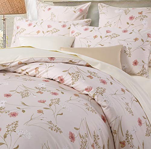 USTIDE Rustic Beige Floral Duvet Cover Set 3Pcs Quilt Cover Set with 2 Pillow Cases All Season Duvet Set,Double Size