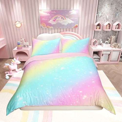 Loussiesd Gradient Rainbow Stripes Duvet Cover Set Double Size For Kids Girls Women Galaxy Bedding Set Dreamy Princess Style Comforter Cover with 2 Pillowcases Abstract Art Design Bed Set