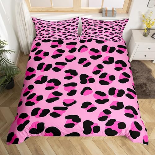 Homewish Leopard Print Bedding Duvet Cover Set Double Size For Kid Teen Adult Cheetah Leopard Decotive 3 Piece Comforter Cover Set And 2 Pillow Sham Africa Animal Theme Pink Black