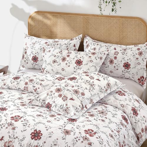 DJY Red Floral Duvet Cover Set Double Size - 3-Piece Red Bedding Set - Wrinkle-Resistant & Breathable Design with Hidden Zipper (Double, 200x200cm)