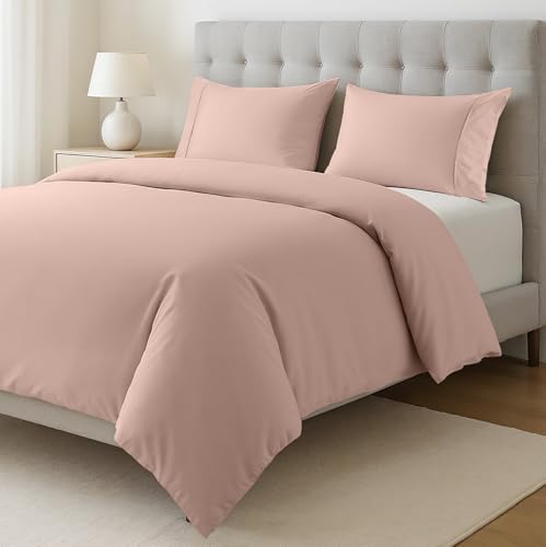 Cotton Duvet Cover Set Double Size Sepia Rose - Pre-Washed 100% Cotton, Lightweight and Breathable Percale Weave, Eco-Friendly Quilt Cover with Button Closure, 3 Piece Bedding Set