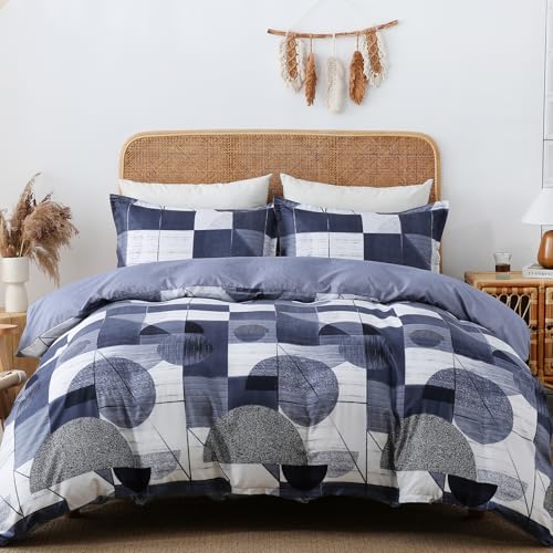 Duvet Cover Set Double Size Navy Blue Geometry Beddding Set with Pillowcases for Teens Adults Soft Microfiber Polyester Geometry Bedding, 200x200cm