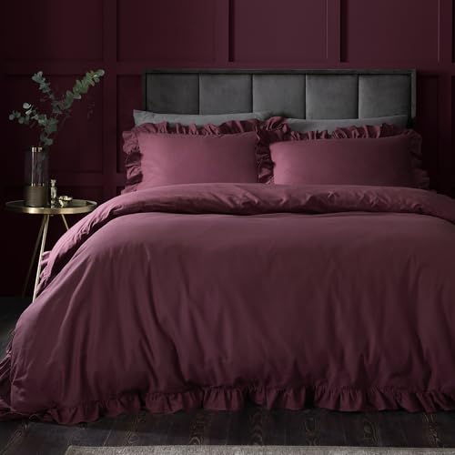 Appletree Hygge Cotton Duvet Cover Set, Double Size 200x200cm, Berry, 100% Cotton, 144 Thread Count, Plain with Frilled Border, Orange