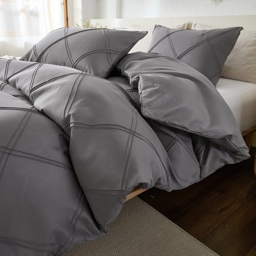 Herside Grid Textured Duvet Cover Set Gray Double Size Bedding Set Ultra Soft Microfibre Quilt Cover with Zipper Closure 3 Pieces Vintage Boho Bedding Cover Girls Teens Adult Bedding Set