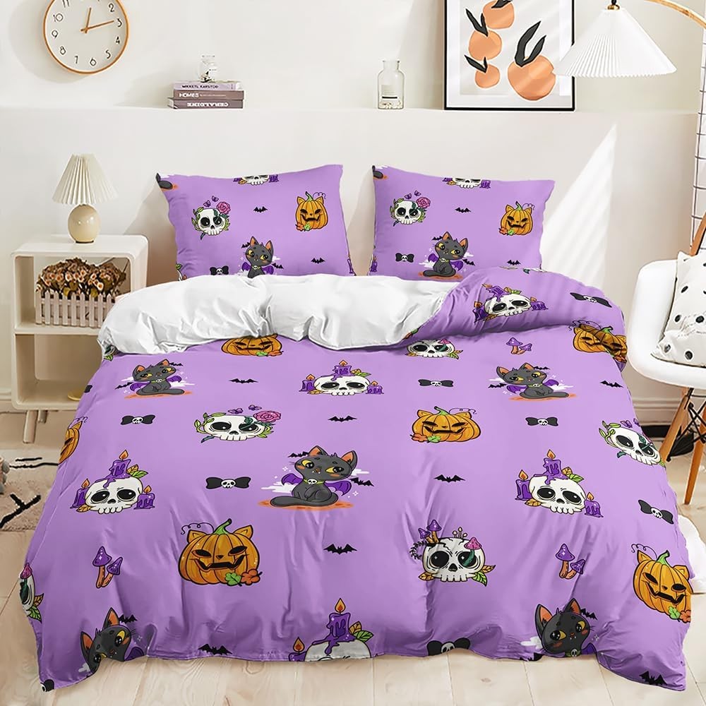 Lunoroey Girls Halloween Duvet Cover Set Double Size Double, Halloween-2