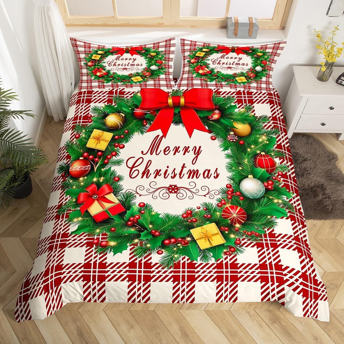 Luxury Snowflake Duvet Set Double Size, Warm & Comfy Christmas Quilt Bedding Set, 3 Piece Noel Bed Cover, Multi