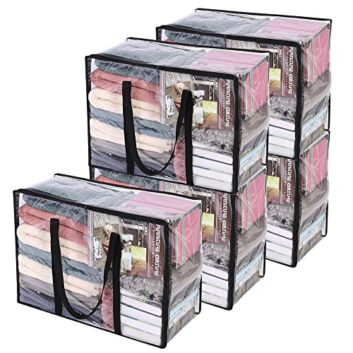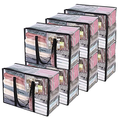 Vieshful 5 Pack Clear Comforter Storage Bag, 110L Clothes Storage Bag with Zipper Closet Organizer, Plastic Storage Containers Moving bags for Comforter, Blanket, Bedding, Duvet, Toys