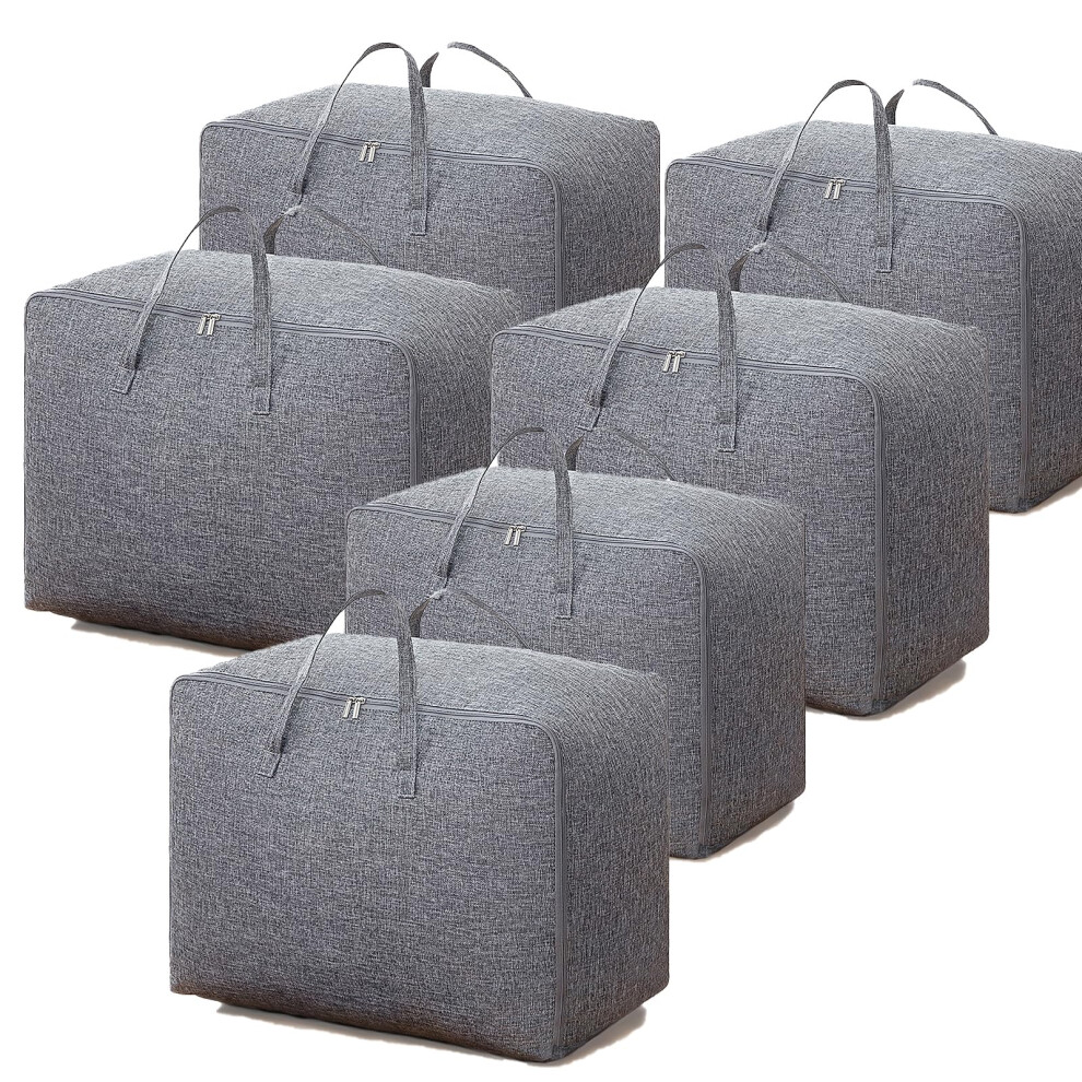 Lifewit 95L Clothes Storage Bags Large Storage Box With Lid Packing Boxes for Moving House With Reinforced Handle Thick Fabric Clear Window for Clothes Duvet Blankets Bedding, 6 Pack, Grey
