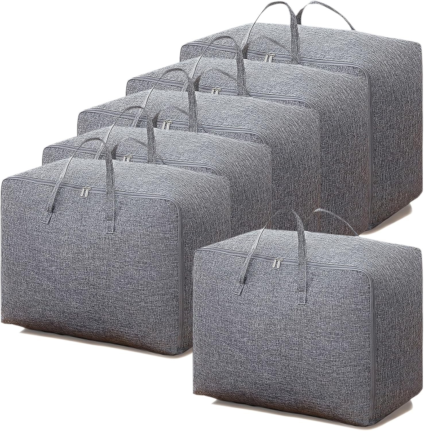 VENO 4 Pack 105L Large Storage Bags, Duvet Storage Bag King Size for Moving, Underbed Storage Bags for Bedding, Laundry Packing Boxes Clothes, Duvets, Pillows, Quilt, Blankets (Grey, 4 Pack 105L)