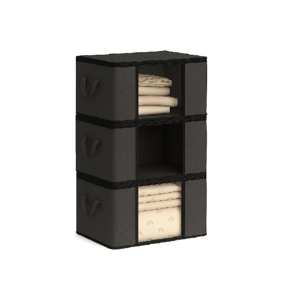 Storagezoid 3 Pack 90 L Three-Ply Fabric Foldable Storage Bags Breathable, Dustproof & Moisture Rresistant with Reinforced Handles & Large Capacity for Clothes, Shoes, Blankets, Bedding and Duvet