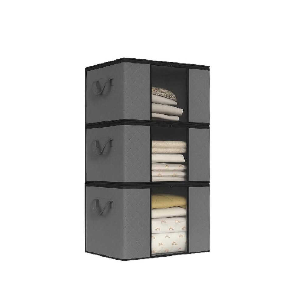 (GREY) 90L Large Storage Bags with Lids 3pcs Reinforced Handle Clothes Storage Boxes for Moving House, Thick Fabric Duvet Storage Bags