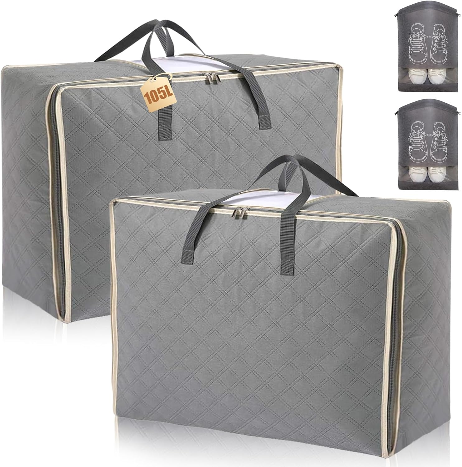 105L Duvet Storage Bags with Zips, 2 Pcs Extra Large Storage Bags, Moving Bag wi