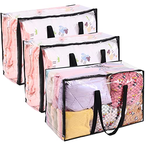 Vieshful 3 Pack Clear Comforter Storage Bag, 110L Clothes Storage Bag with Zipper Closet Organizer, Plastic Storage Containers Moving bags for Comforter, Blanket, Bedding, Duvet, Toys