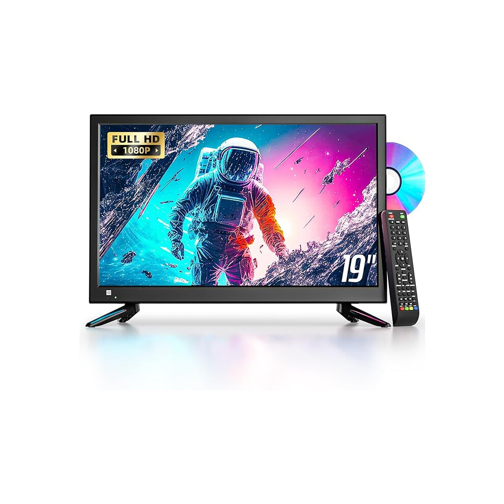 19 inch small TV Built-in DVD player, 1080P mini TV with freeview, supports HDMI USB AV input, 12v tvs