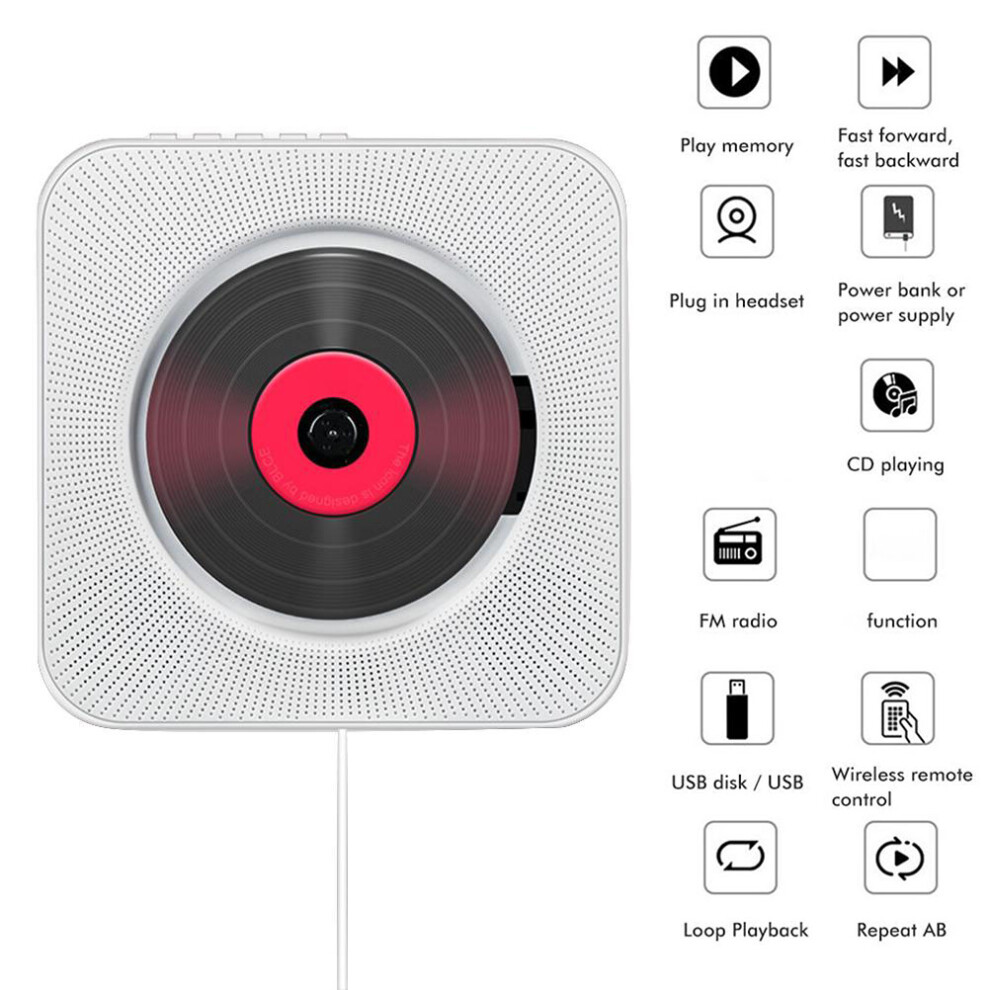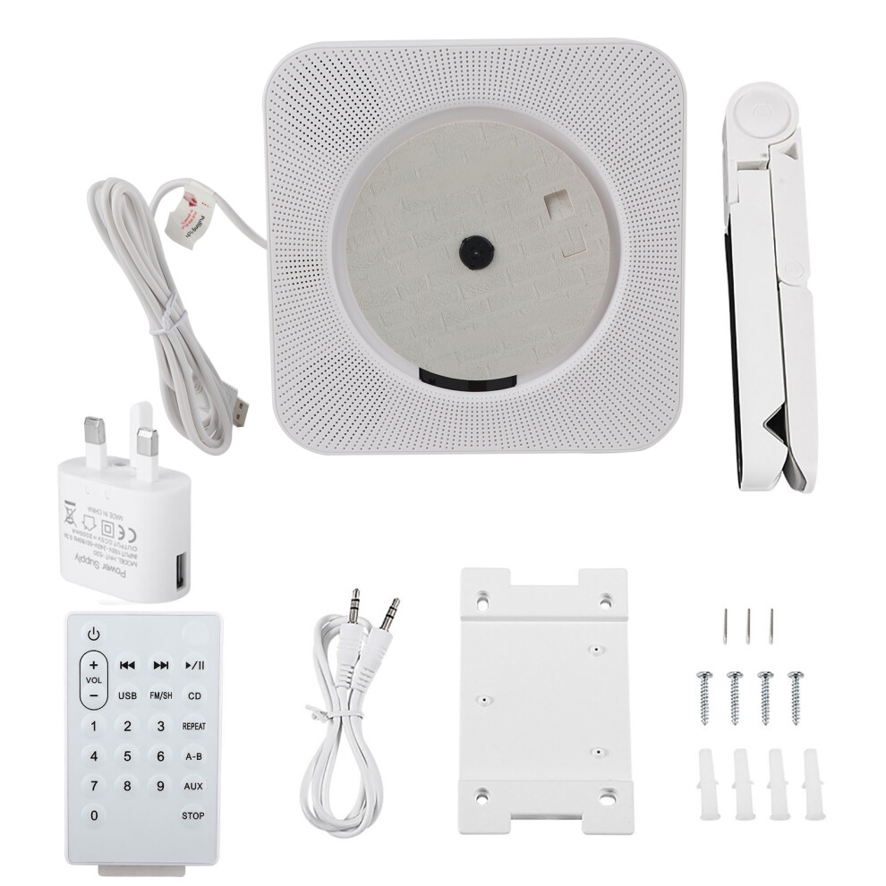 Crystal Clear Stereo Surround Sound Wall Mountable CD Player Bluetooth Music Player With HiFi Speakers FM Radio Remote Control AUX Input Output Built