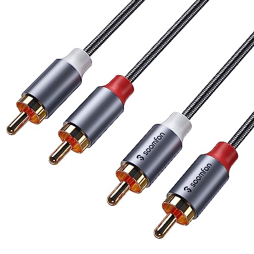 SOOMFON Phono to Phono RCA Cables 2RCA Male to 2RCA Male Stereo Audio Cable Red and White Leads HiFi Sound 24K Gold Plated Connector Copper Core Compatible with Amplifier DVD Player Speaker