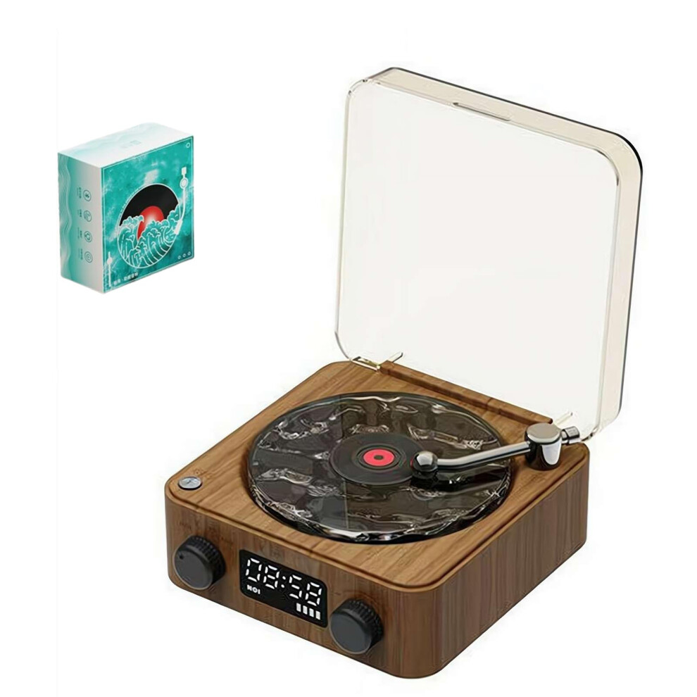 Mini Record Player with Bluetooth Audio Portable Vintage Surround Sound Music Box Listening to Seawater Ripple Speaker