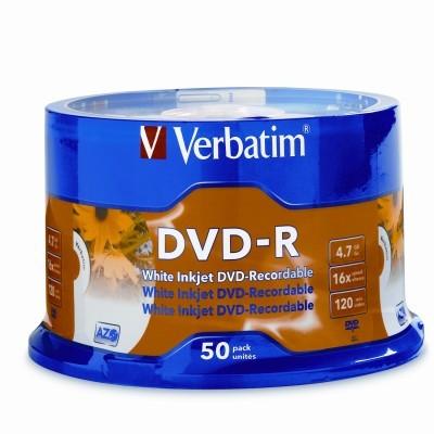 Verbatim DVD-R 4.7GB 16x 50-pack Cakebox Wide Thermal Printable