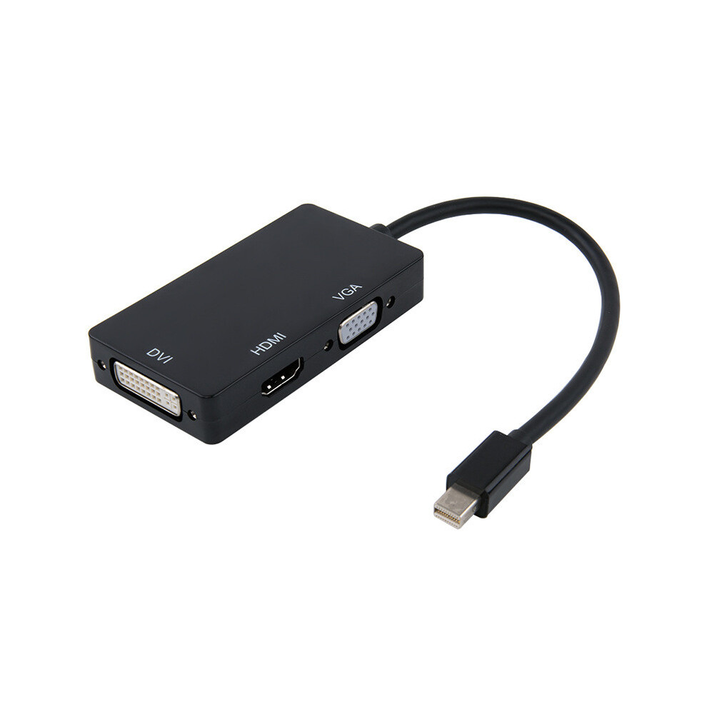 (Black) Portable 3 in 1 Thunderbolt Mini Display Port to HDMI-compatible VGA DVI Adapter Cable
