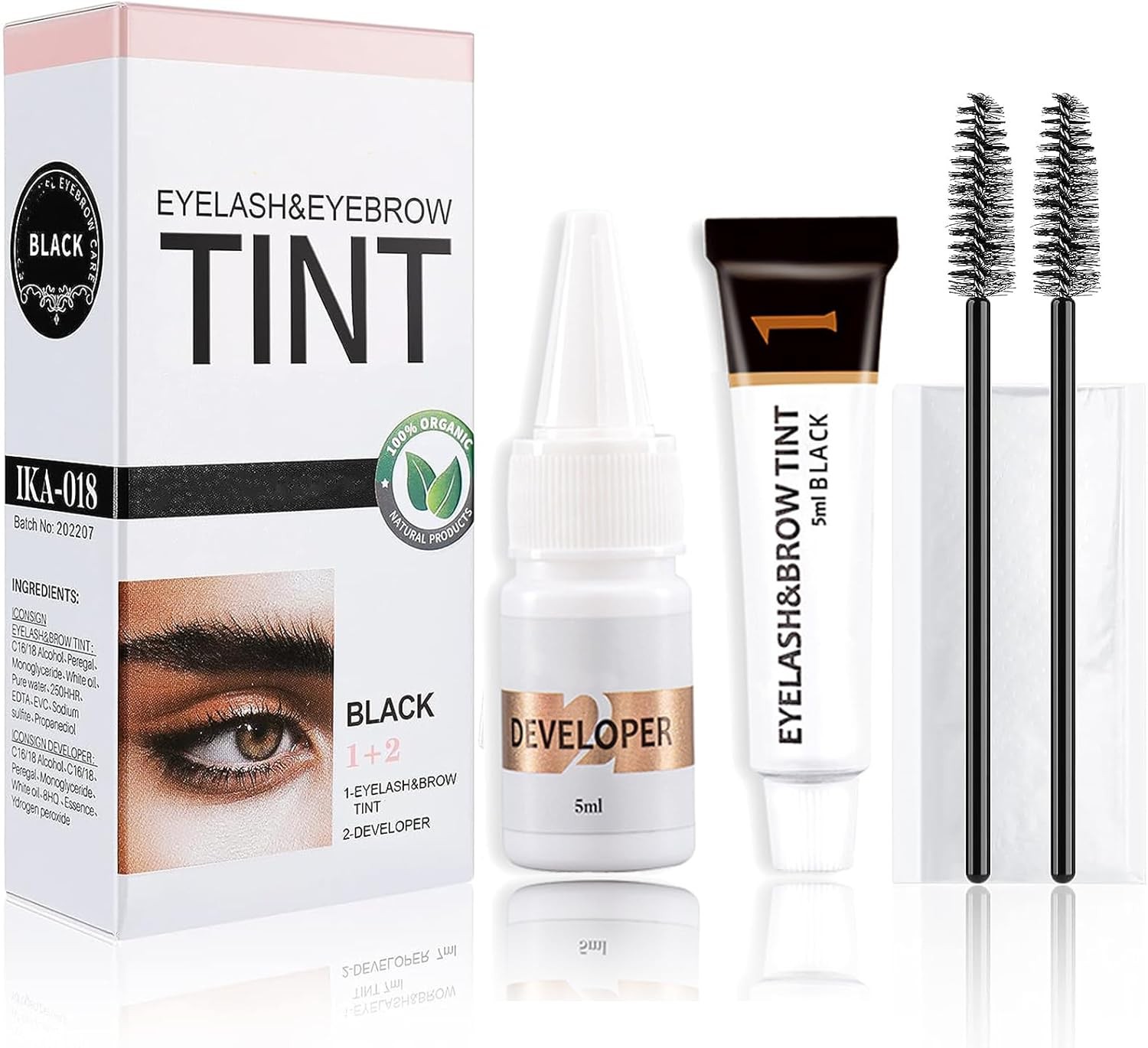 Brow & Lash Tint Kit, 2-In-1 Professional Black Eyebrow & Eyelash Dye Kit, Lasting for 6 Weeks, Salon Home Use DIY Hair Dyeing for Full Brows & Volume Lashes 7ml