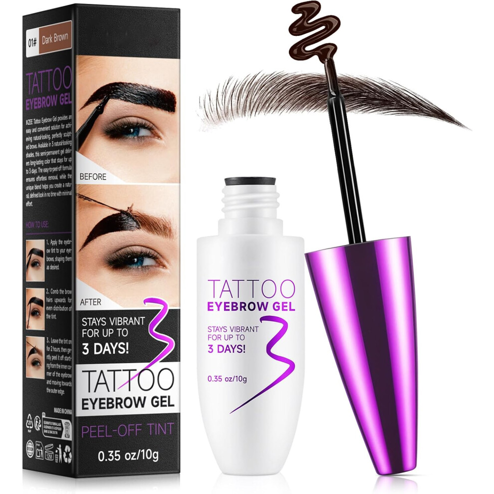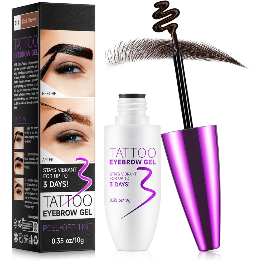 (Dark Brown) Peel Off Eyebrow Tint, Brow Tattoo Peel Off, Waterproof Eyebrow Gel&Long-Lasting Natural Color, Eye Brow Dye for Defined Brows, Smudge-Pr